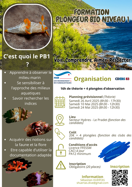 Inscription pour la Formation au PB1 qui se déroulera à Hyeres (Var) à partir du 25 avril 2025